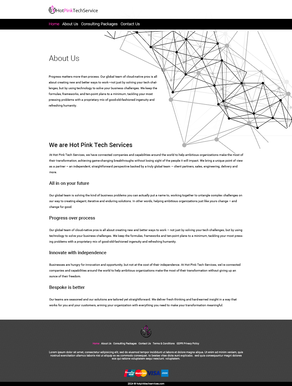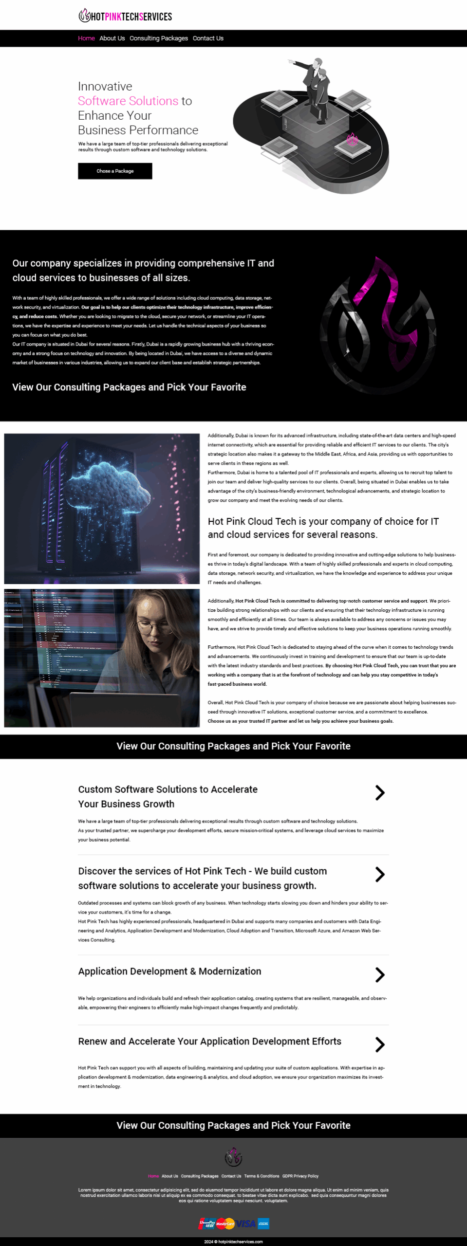 Commencing in March 2024, the Hot Pink Tech Services project marked a dynamic collaboration between our team and the client, who provided a clear vision and detailed direction to guide the creative process. Built on the flexible and robust WordPress platform, the project journey encompassed not only the visual and technical development of the site but also a comprehensive branding approach that aligned with the client’s business identity. From conceptual design to responsive development, every element was crafted with precision, ensuring a cohesive and modern digital presence. The project progressed through careful design reviews and refinements, culminating in a polished website that embodies the company’s commitment to excellence in IT and cloud services. Finalized in June 2024, the result stands as a vibrant, functional, and client-approved platform, proudly representing the brand online.