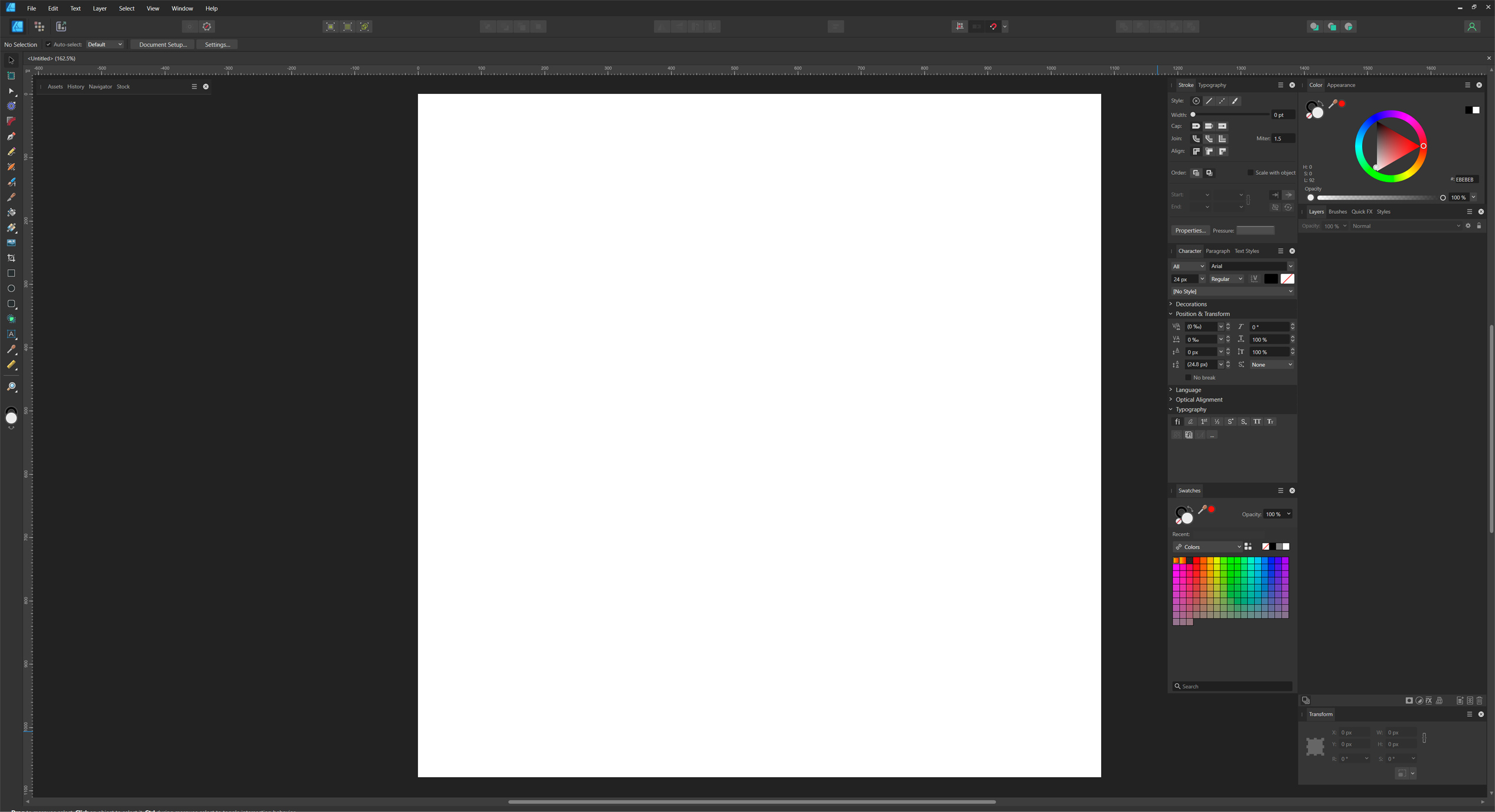 When you create a new document, Affinity Designer offers a clean and professional setup screen. You can choose: